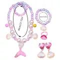 6 Pieces Mermaid Shell Necklace + Bracelet Gift Set Girl Fashion Accessories for Kids