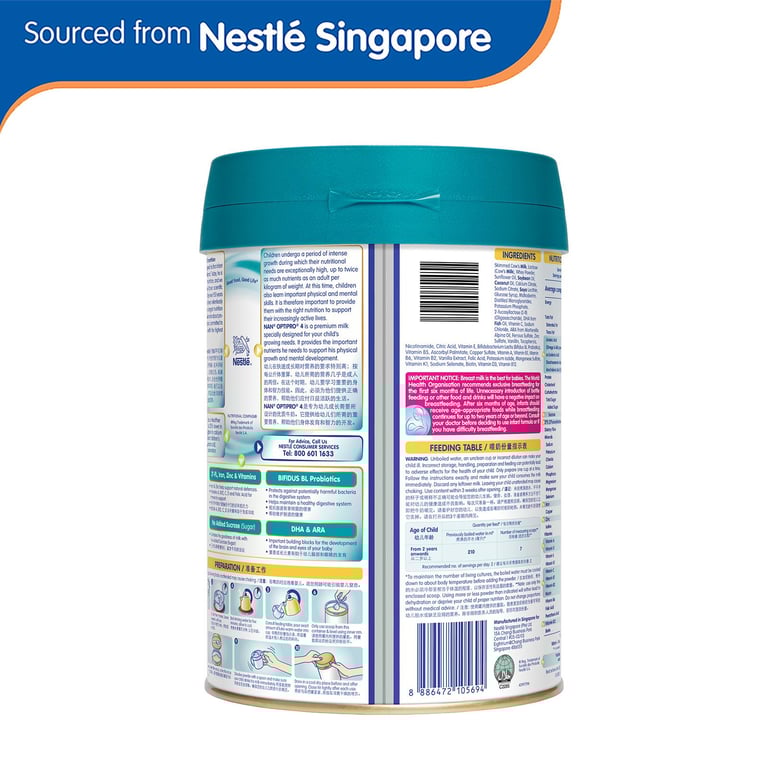 NAN® OPTIPRO® 4 is a Healthier Choice product. It is 25% lower in sugar and 25% higher in calcium than regular growing up milk.