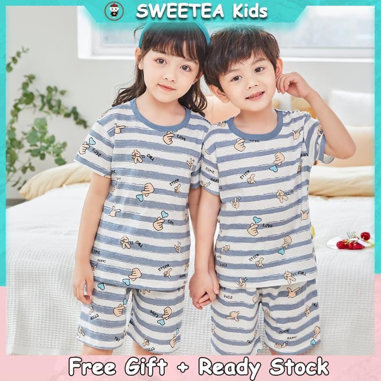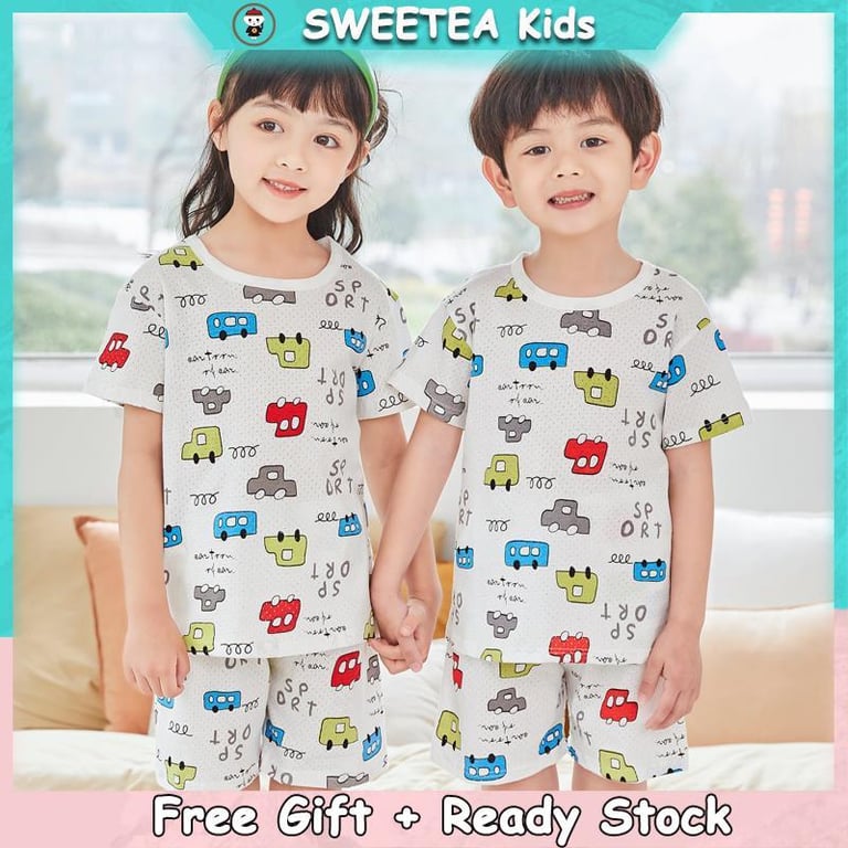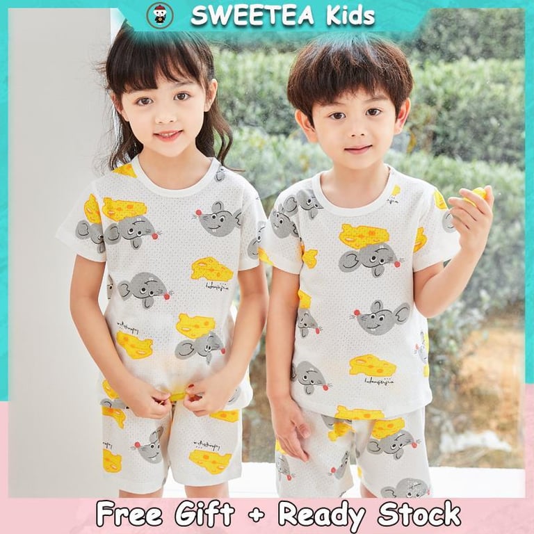 【SWEETEA】 Cute Shirts Kids Boys Girls Clothing Cotton Short Sleeve T shirt+Shorts Suit 2pcs/set
