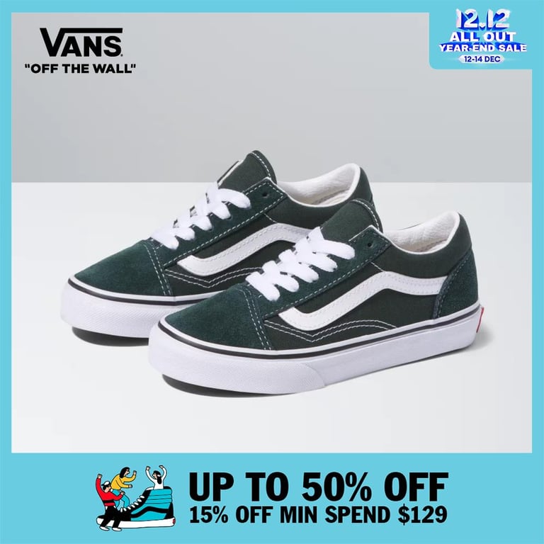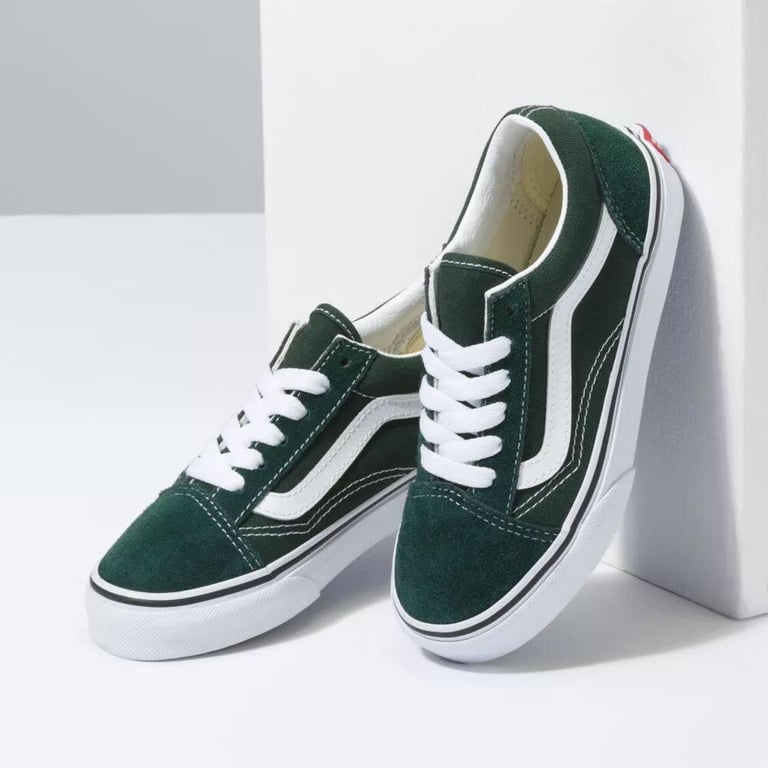 Constructed with durable suede and canvas uppers in a range of fresh colorways, the Kids Old Skool pays homage to our heritage while ensuring that this low top, lace-up shoe remains as iconic as ever. It also features re-enforced toe caps, supportive padded collars, and signature rubber waffle outsoles.