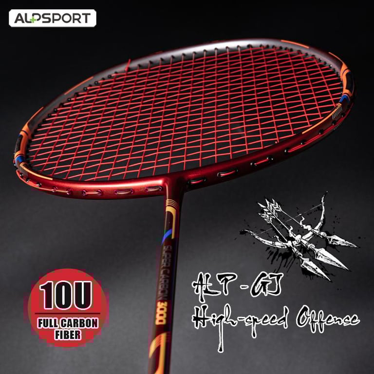 ALP GJ 10U 50g Super Light 22-35Lbs 100% Full Carbon Fiber Original Badminton Racket With String Training Racquet High Speed Reket Professional Outdoor Sports Raket Badminton For Adult