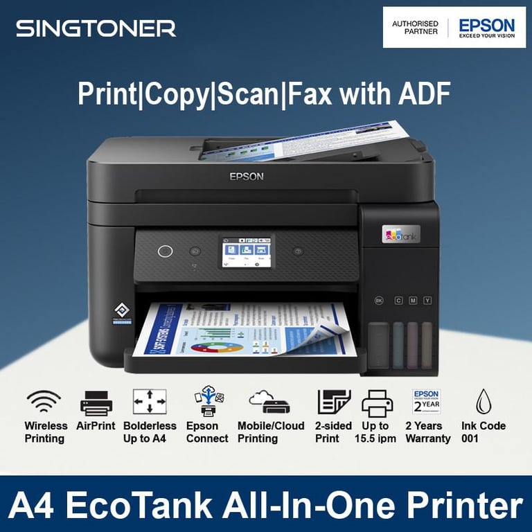 [Singapore Warranty] Epson L6290 L-6290 6290 Replacement For L6190 L-6190 6190 Business Wi-Fi Duplex All-in-One Ink Tank Inkjet Printer with ADF Epson colour printer color inkjet printer color printer ink tank printer inktank printer