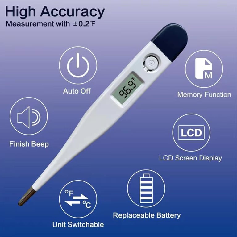 [Widely Applicable]The thermometer is waterproof and easy to clean, making it less of a nuisance. Fits for human,pig, dog, cow, horse, sheep, rabbit, etc.