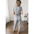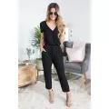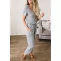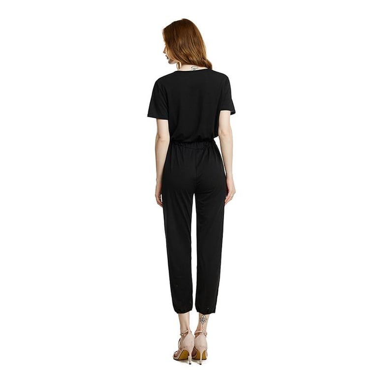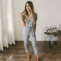Womens Casual V Neck Short Sleeve Long Pant Jumpsuits Rompers with Pockets