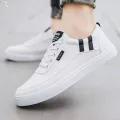 HKCP White Shoes For Men Plus Size 39-47 Leather Black Sneakers Mens Shoes Breathable Fashion Low Cut Casual Running Shoes For Men On Sale