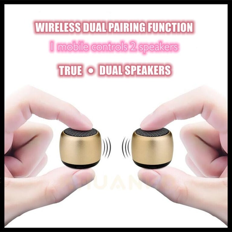 【Specification】 Dimensions : 34mm x 28.5mm Net Weight : 33g speaker Parameter : 4Ω 3W Frequency Response : 20Hz - 20KHz Battery Capacity : 200mAh Battery Charging Voltage : 5V Playback Time : 2 - 3 Hours Battery Charging Time : 1 Hours Compliant : Bluetooth V5.0 【Items included】: - Mini speaker 3W with Bluetooth Function x 1 - Micro-USB cable x 1 Dual Pairing Function - It is available to use 1 mobile phone to control 2 mini speakers at the same time. Manual Steps : 1 ) Long press the ON/OFF button of 2 mini speakers, then 2 mini speakers are in standby status. 2 ) take 1 standby speaker as main one, double quick click ON/OFF button, you will hear a voice , then 2 speakers are connecting. 3 ) Open the bluetooth of your mobile phone and connect the "MT" as usual , then you can control 2 speakers at the same time. If you find that the received item comes with any issues, please contact us directly, We will try all our best to solve it. You are always our priority. Please CHOOSE THE CORRECT variation so we can avoid mistakes Strictly NO CANCELLATION once the order is confirmed.