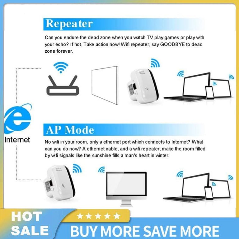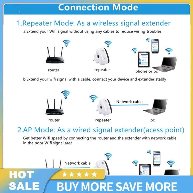 1. Multiple operation modes: ①Relay mode can easily expand your wifi range without cables, which is more convenient. ②AP mode can create a new wifi hotspot for sharing, so you don't have to reveal your private wifi. ③ LAN port allows you to make wired connection.