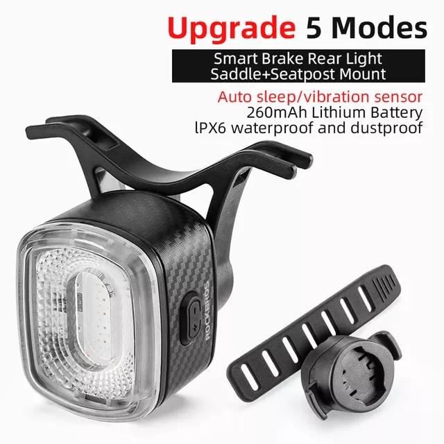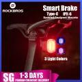 【SG Delivery】ROCKBROS Bike Tail Light Smart Brake Type-C LED Light Waterproof Rechargeable Bicycle Rear Light Ultralight 5 Modes ABS Back Safety Light Bike Accessories