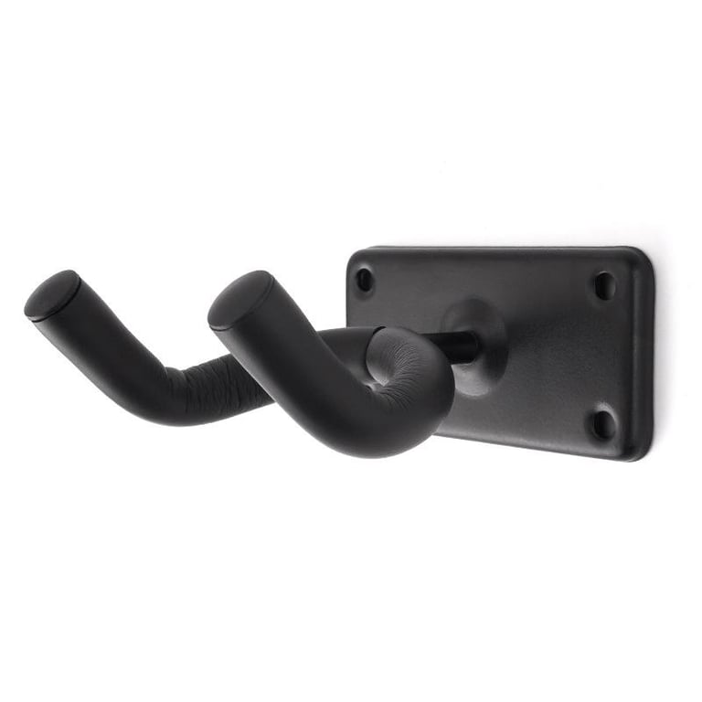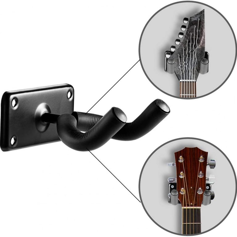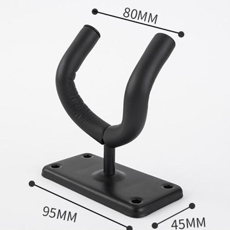 The instrument holder is made of metal, which is durable. It has sponge to protect your guitar or other instruments from scratch. The wall mounted design saves space for you.