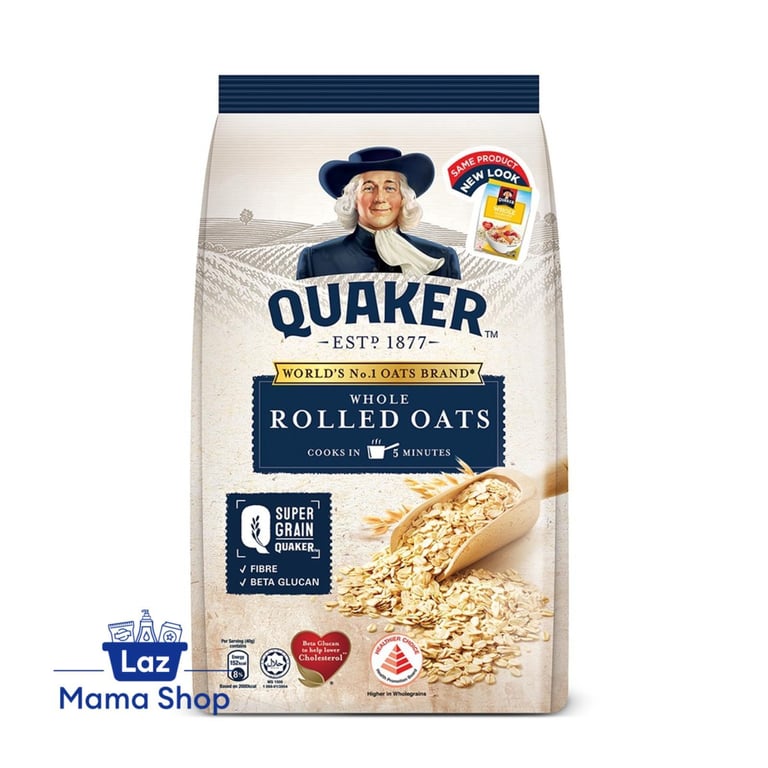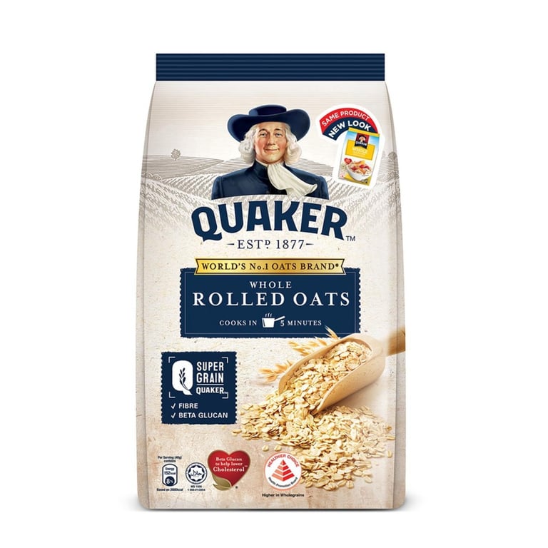 Quaker Whole Rolled Oats are made with the wholesome goodness of 100% wholegrain. It is a naturally good source of dietary fibre, magnesium, and zinc and is low fat and cholesterol free. Enjoy as a hearty breakfast, added to baked goods or as a savoury and full bodied porridge.