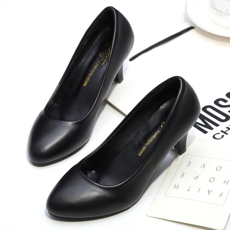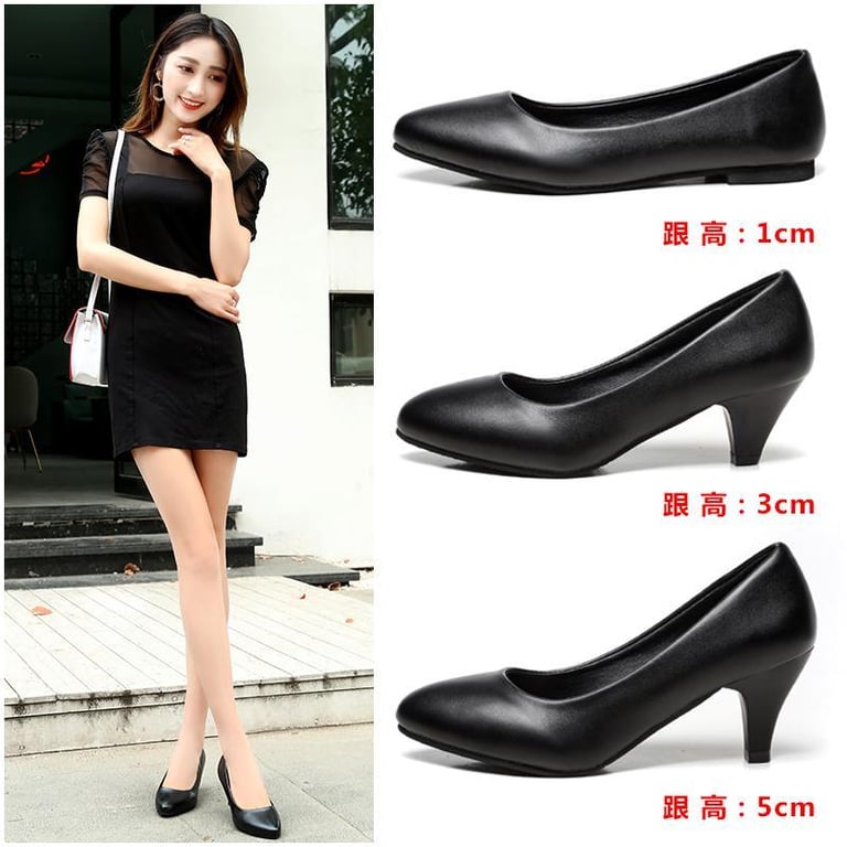 Comfortable Surest Etiquette of Interview Professional Women's Shoe Black Thin Shoes L Student High Heels Soft Work Flats