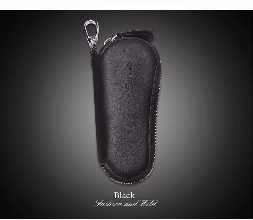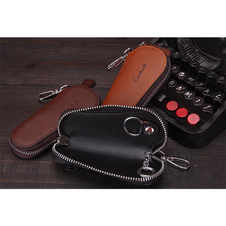 CONTACT'S Men Genuine Cow Leather Car Key Wallets Fashion Women Housekeeper Holders Carteira Keychain Zipper Key Case Pouch