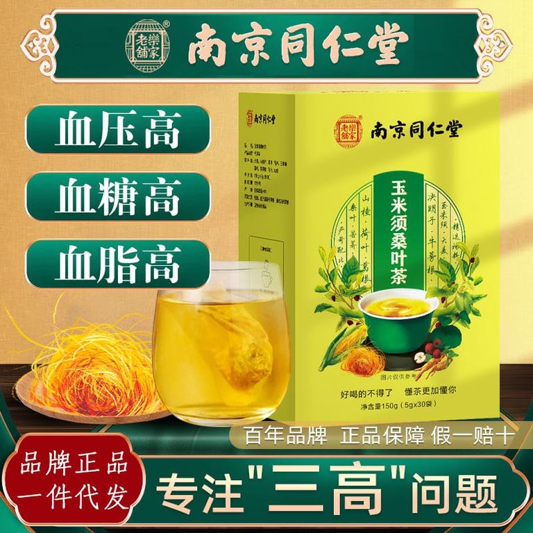 Corn Silk Tea Mulberry Leaves Three High 30 Small Packets of Health Tea Blood Sugar Lowering Blood Lipid lowering Blood Pressure lowering 南京同仁堂乐家老铺玉米须茶桑叶降血压降血糖降血脂三高30小包养生茶