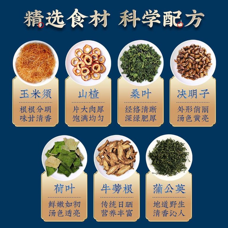原料与配料:玉米须,桑叶,苦荞,决明子,葛根