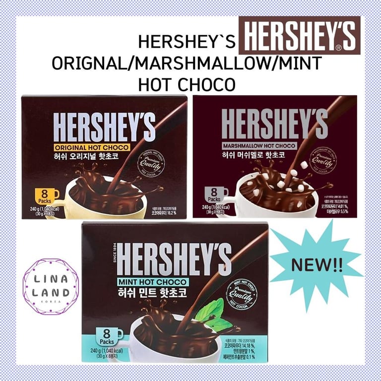 - KOREA Hershey's Hot Chocolate Powder 3 Type ORIGINAL / MARSHMALLOW / MINT 8 Pack (240g) x 2 SET