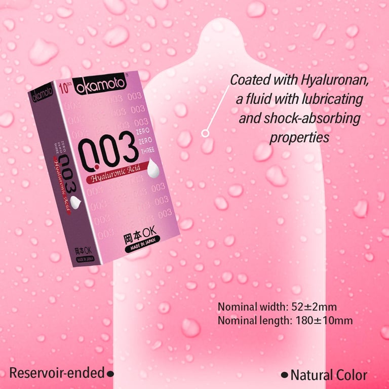 • Coated with Hyaluronan, it enhances the sexual experience with more moisture and pleasure effect.