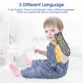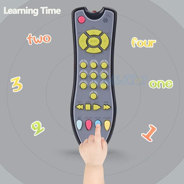 3 Different Language: It has English, French and Spanish, total 3 different language. The remote control features channels keys to imitate a TV remote switching between different channels, so that the baby can experience the real life during imitation.