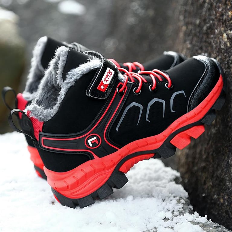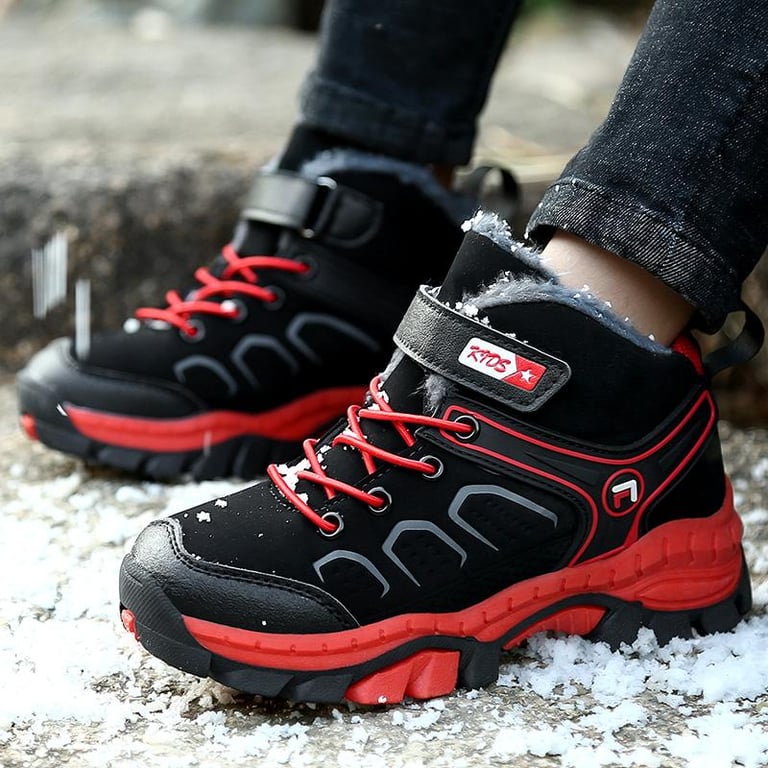 BIZOT Warm Sneakers Boys Shoes Kids Walking Boots Winter Leather Fur Sport Shoes Brand Children Casual Shoes Snow Shoes Waterproof