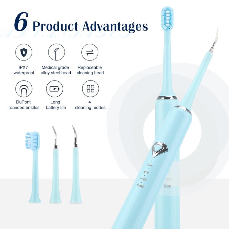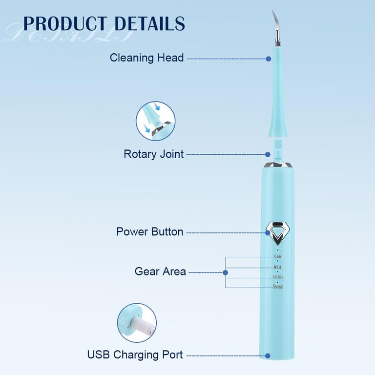 \r\n\r\n4.Equipped with a medical grade alloy steel head (flat head/pointed head), it professionally removes tartar, smoke stains, tea stains and plaque from the tooth surface and on the gums, leaving your teeth fresh and clean.