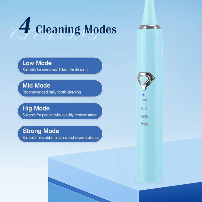 \r\n\r\n3.Four cleaning modes (low-grade, mid-grade, high-grade, strong) fully meet the oral cleaning needs of different groups of people and different dental conditions.