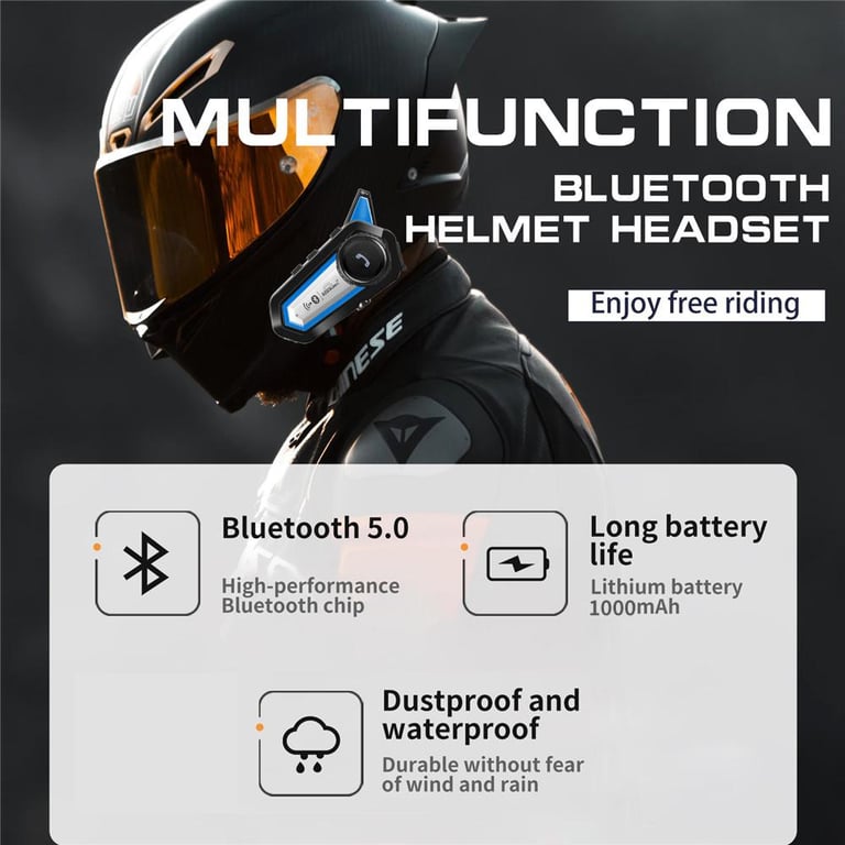 Motorcycle Bluetooth 5.0 Helmet Headset Wireless Hands-free Mic Call Automatic Stereo Anti-interference Waterproof Motorbike Communication Headphone