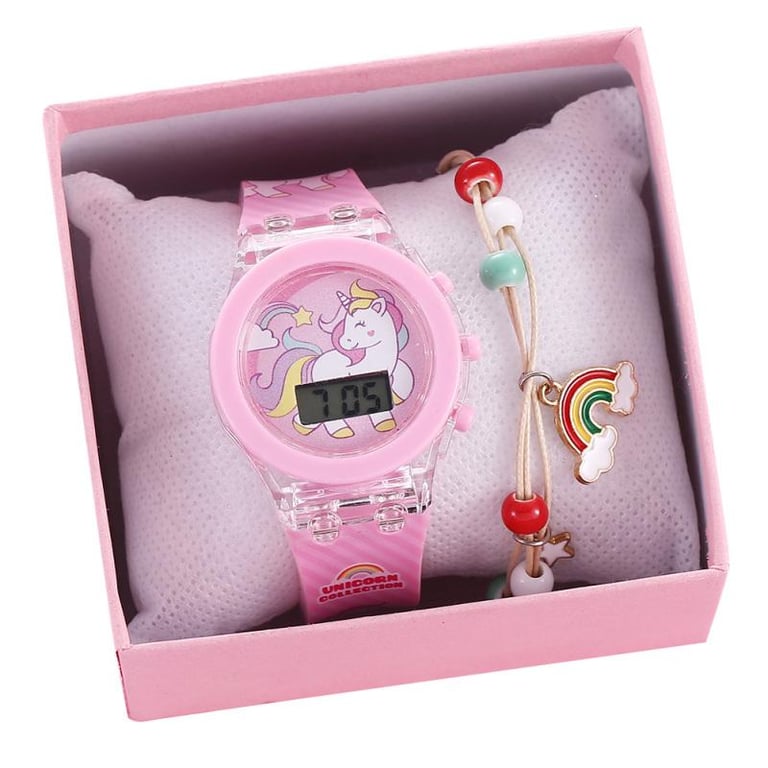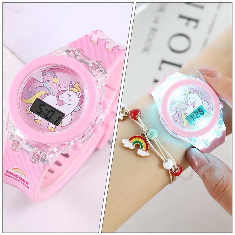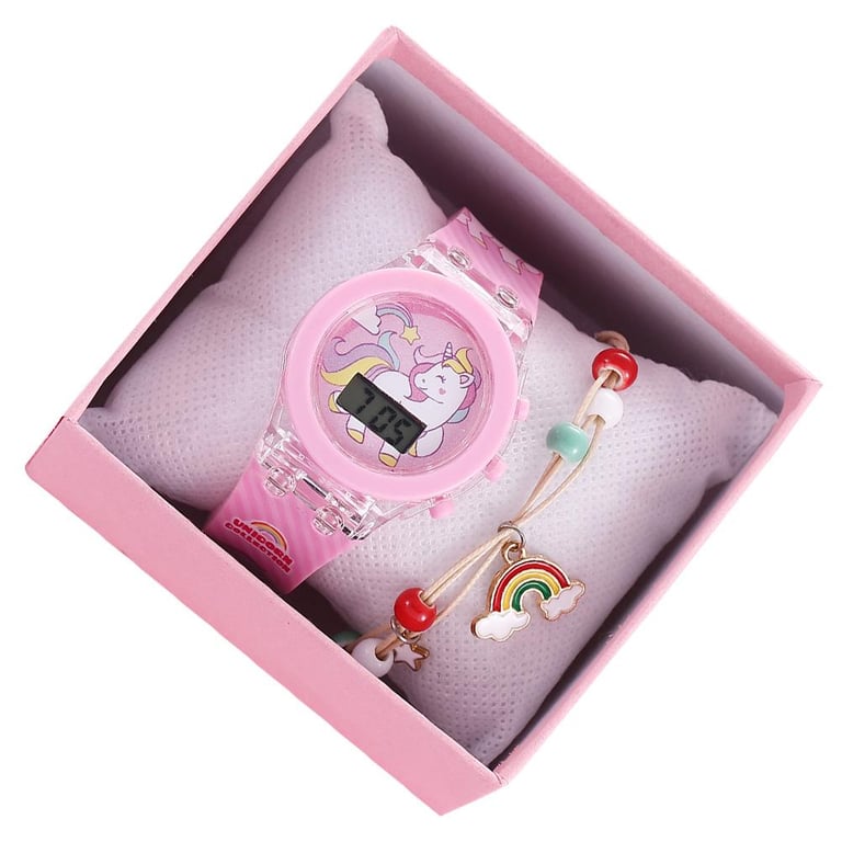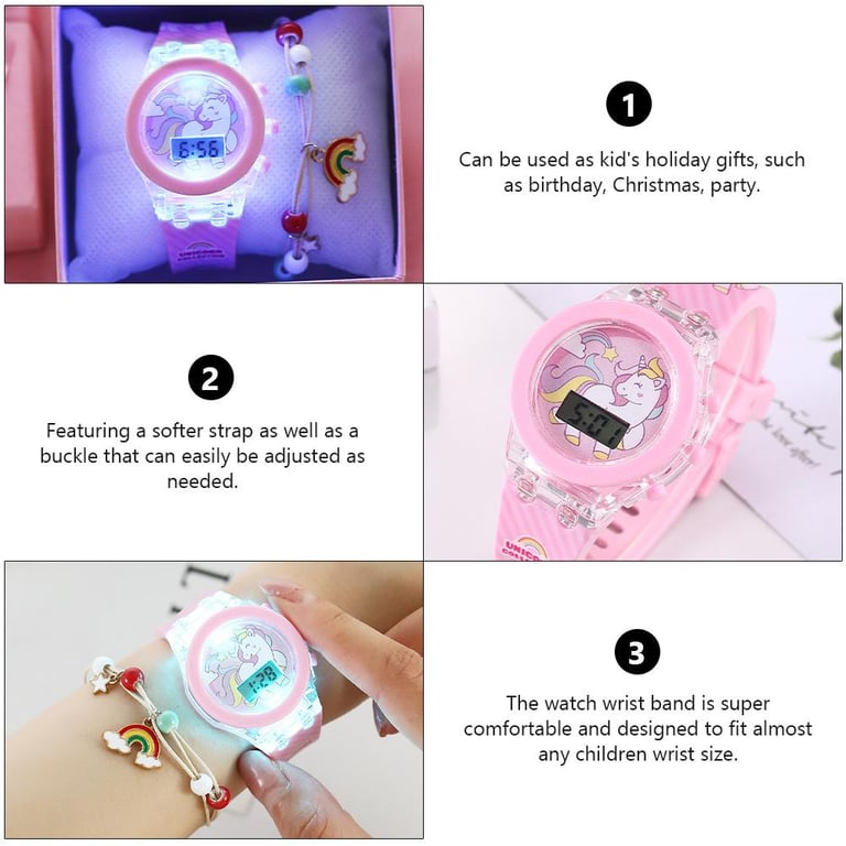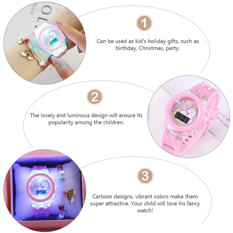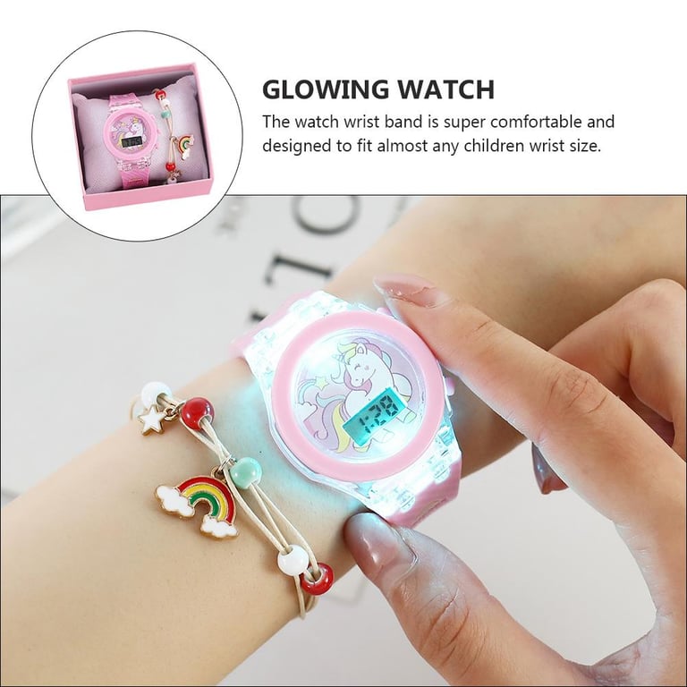 OULII 1 Set Unicorn Pattern Watch Children Luminous Cartoon Watches with Bracelet
