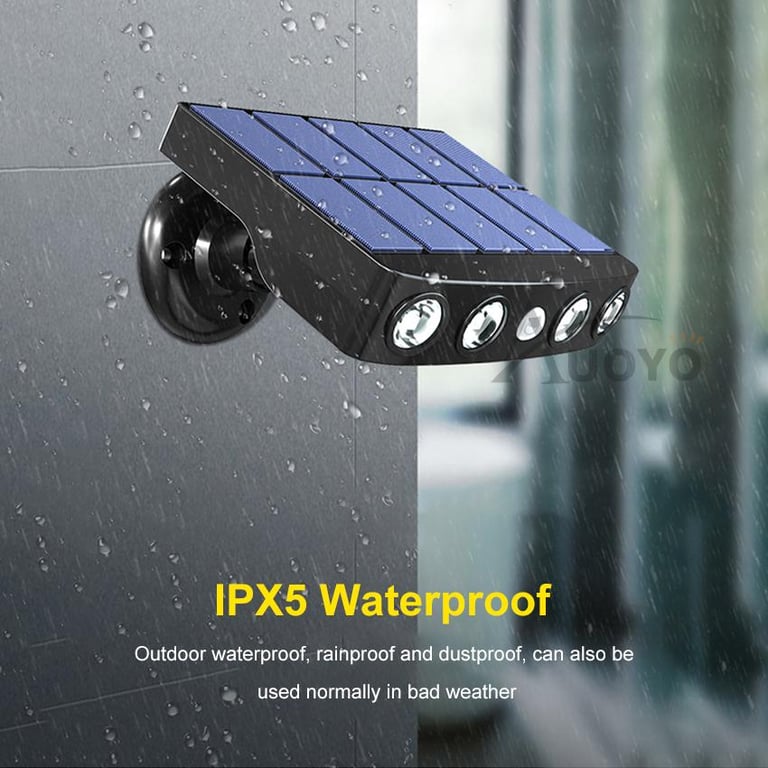 - Waterproof IPX5: Waterproof coefficient IP65, the professional IPX5 waterproof. Even on rainy days it can light your garden, yard, garage, driveways, front doors, backyards, walls, etc.
