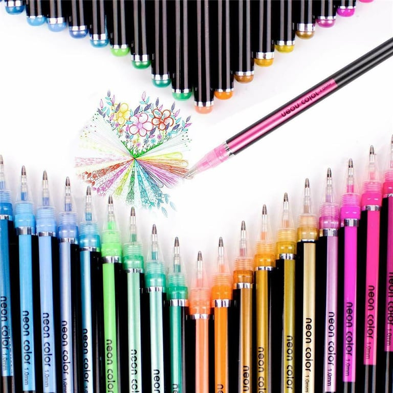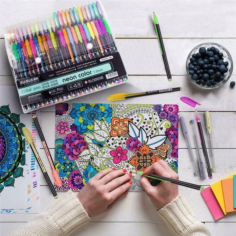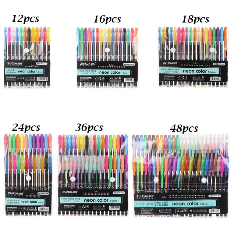 - Depend on the analysis of a number of artists's work, Our research and development team selected the most commonly used 48 kinds of color sets,include 4 styles ink: Metallic, Glitter, Neon, WaterChalk. This gel pen set let your mind and express more freely. Your creativity will not be subject to any restrictions.