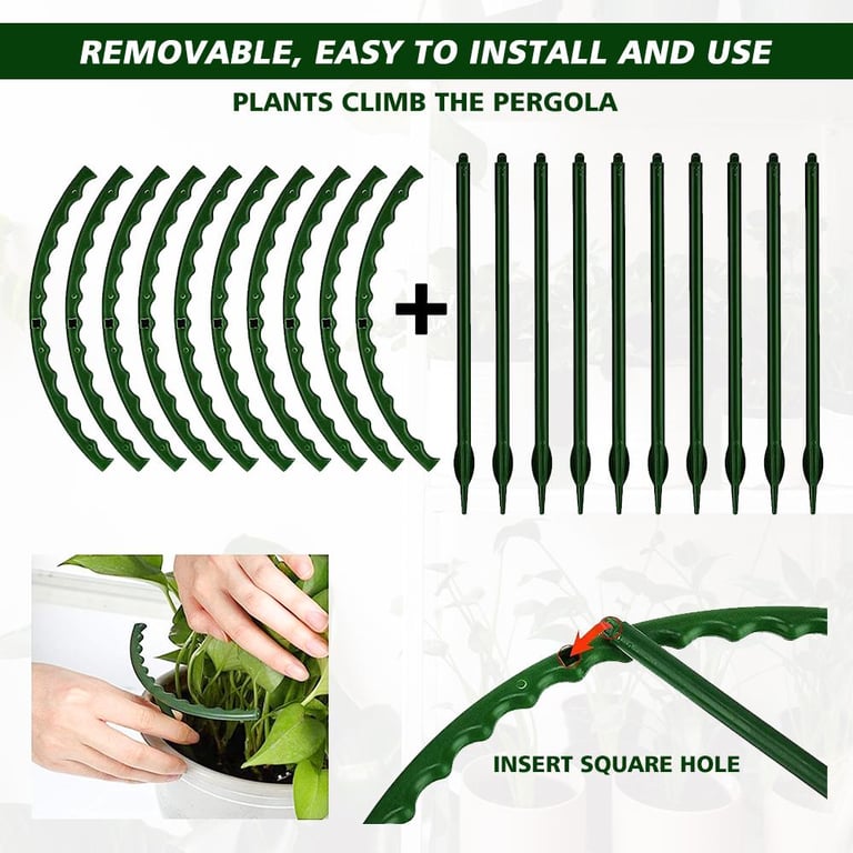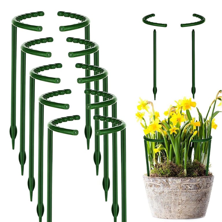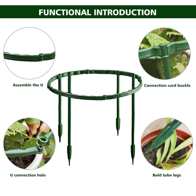 These plastic plant cages are designed in a half-circle shape. You can place a single plant at any position, connect with 2 or more stakes to form a circular structure, obtain a stronger effect, well support and protect stem plants.