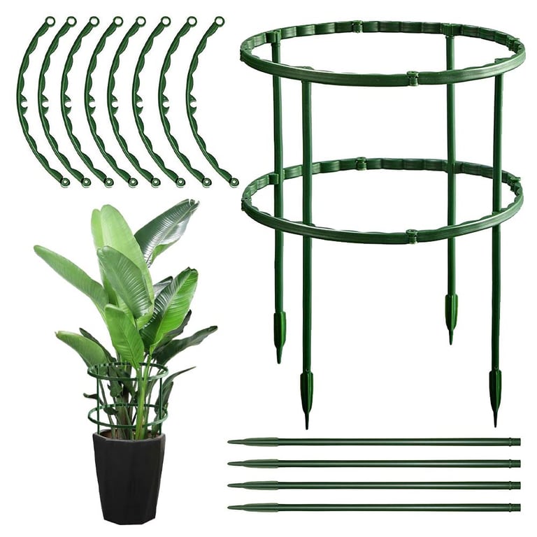 The plant support ring is made of durable plastic which is resistant to deformation, prevent branch and vine from spreading out and falling, protect plants against a strong wind, heavy rain, and their own heavy blooms, help create the tidy border and add aesthetic appeal.