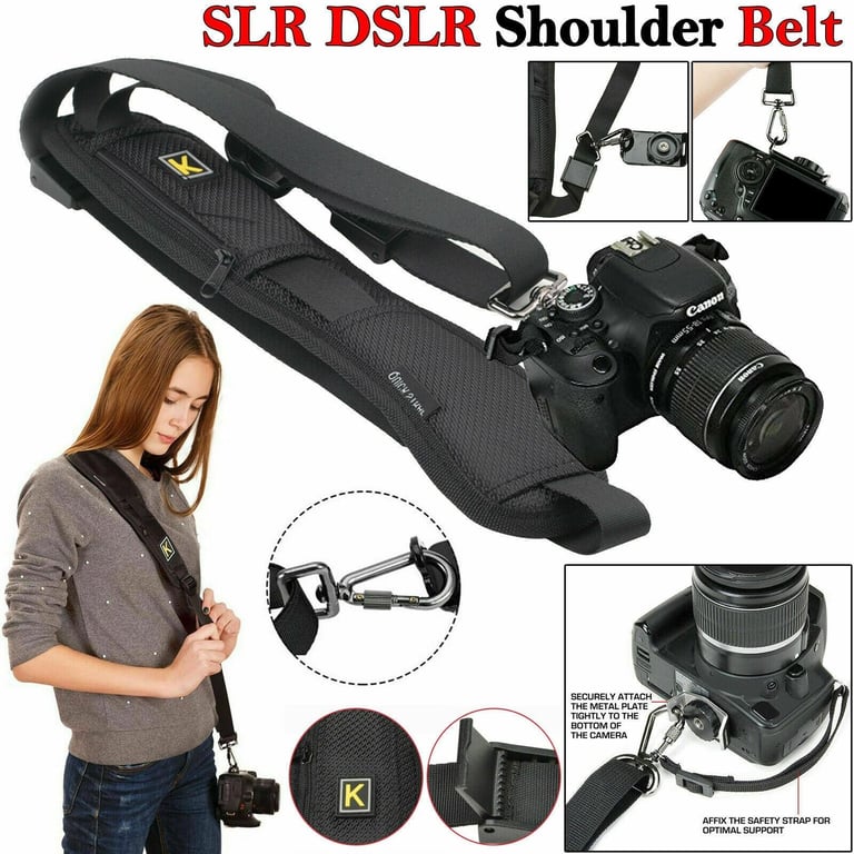 This Camera Strap constructed ofballistic nylon for extreme durability, design for outdoor photo shooting job.The Elastic Neoprene shoulder pad will fit for your shoulders perfectly andanti-slip strap will make you feel more comfortable. Perfect design and shapereduces pressure when carrying DSLR cameras.