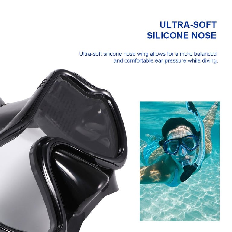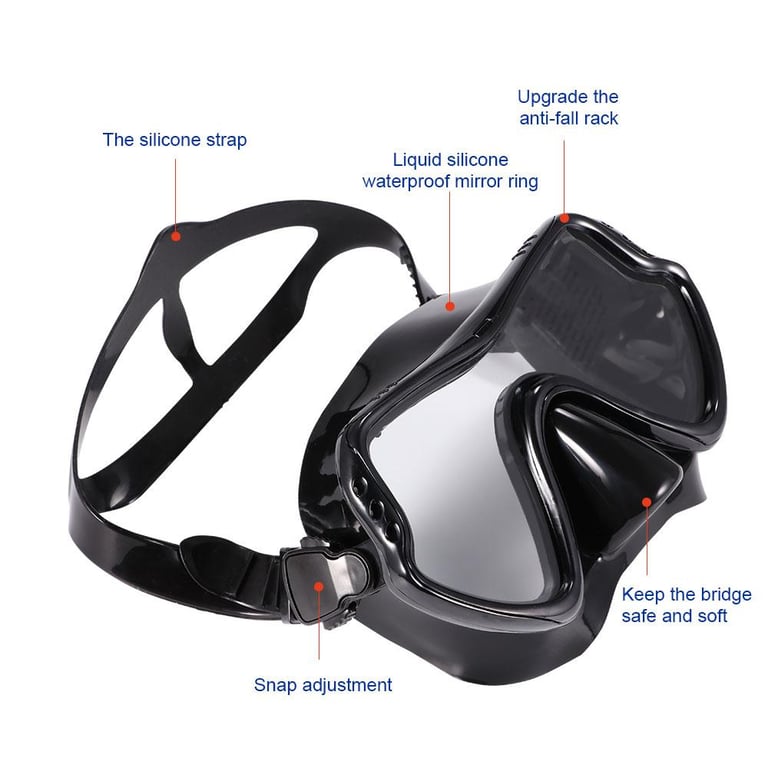 - Professional Scuba Diving Mask Original Equipment Tempered Glass Anti Fog Free Breathing Anti-Leak Dry Top Snorkeling set for adults underwater Features: Wide field of view Tempered glass lens, anti-fog and impact resistance, the field of view is increased from 120 degrees to 180 degrees, and the mirror has a wide field of view. Design of glasses skirt The key areas around the forehead and cheeks are designed with dimples, which can increase softness, flexibility and contact with the skin surface of the skirt. Comfortable and soft Our exclusive ultra-light two-lens mask uses ultra-light polymer frames and comfortable high-quality silicone skirts. Completely dry vent pipe The top valve has a float valve. When the tube head is immersed in water, the float will immediately activate the valve to seal the breathing tube and prevent water from flowing out. Large Diameter The breather tube of the air release valve adopts a large-flow air release design, and provides a large-caliber air release valve with a cover, which can be cleaned quickly and easily, reducing the amount of water left in the cigarette holder instantly. Guard against For snorkeling, the shockproof PC material has a snorkel, shockproof and abrasion resistance. The silicone water stop valve plate has a great anti-leakage effect. Adjustable buckle and silicone strap, suitable for different people. specification: Type: Snorkeling equipment Quantity: 1 piece Material: Silicone + PC + PVC Colour: Black Snorkeling length: 46.4cm / 18.24 inches Mask size: 17.2 * 9.2cm / 6.76 * 3.62 inches Net weight: 400.0g / 14.11 oz package: 1 * Snorkeling equipment # Scuba Diving Mask# #Snorkeling equipment# #Original Tempered Glass Snorkeling set # #Anti Fog Snorkeling set # #Free Breathing Snorkeling set # #Anti-Leak Snorkeling set # #Dry Top Snorkeling set # #Snorkeling set for adults underwater#