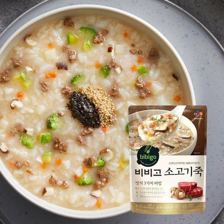 BIBIGO Beef Porridge 450g (EXP-2023.01.05) bibigo porridge Abalone porridge CJ bibigo bibigo food korea food k-food korea soup korean food raya hari raya raya gift