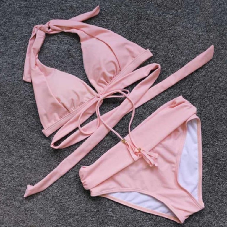 Pick me up Shop Plus Size Women Bikini Pure Color High Waist Padded Swimsuit Bikini Set Brazilian Beachwear Push Up Bikinis