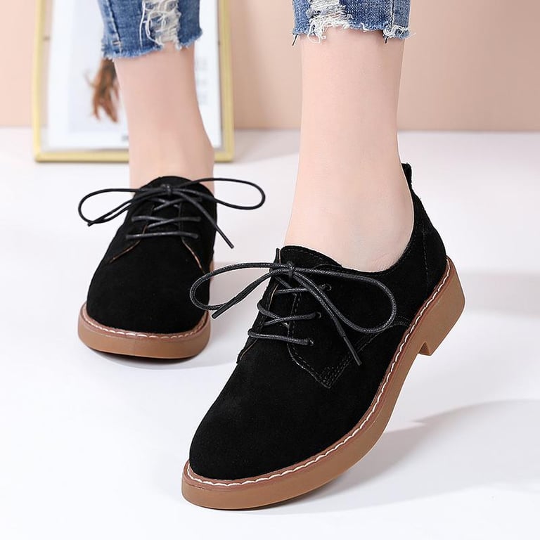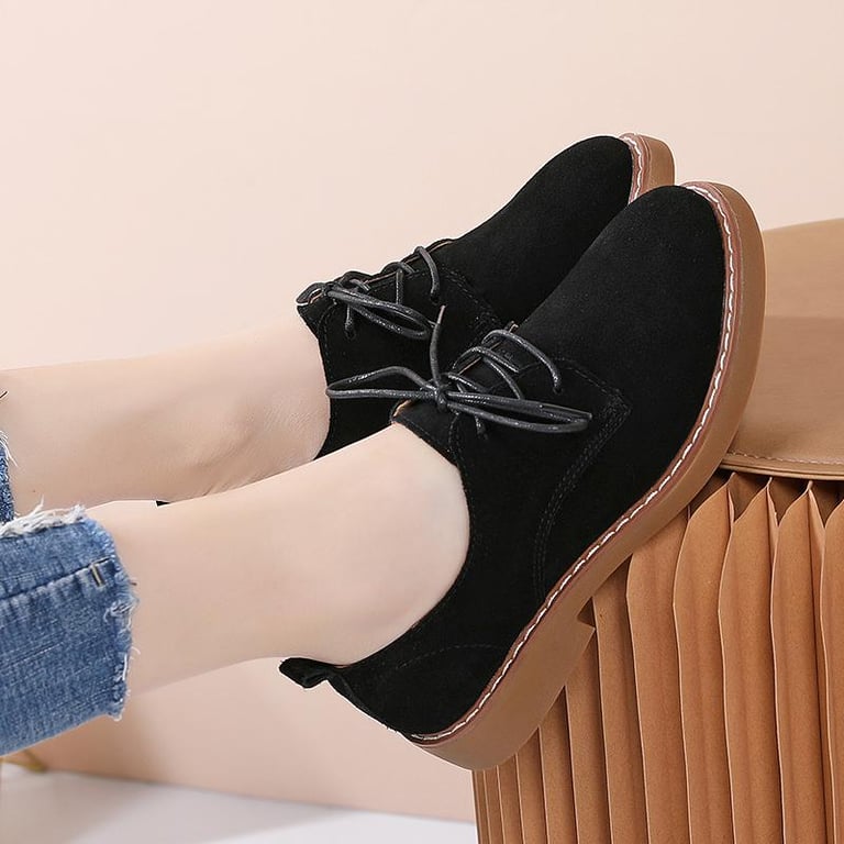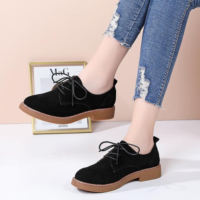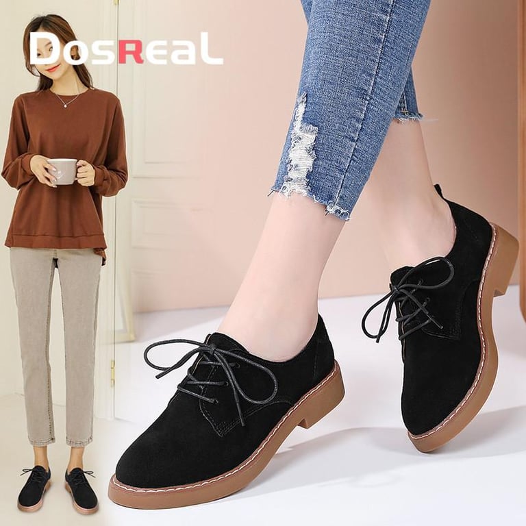 DOSREAL Suede Leather Oxfords For Women Top Quality Spring Autumn Women Flats Brogue Derby Leather Lace up Classic Footwear Lady Dress Shoes