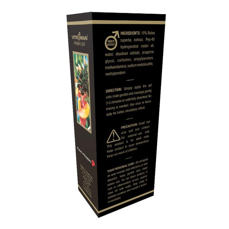 Vitroman Herbal Gel Men's Health Enhancement - Butea Superba for family planning, reproductive health, Enhance blood circulation, improve hardness, massage gel, natural herb, no stinging, numbing feeling, non greasy/oily,