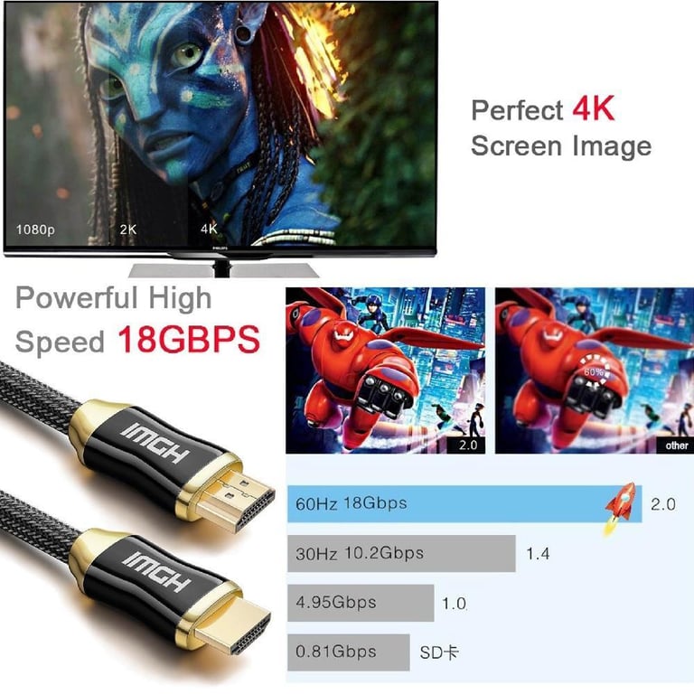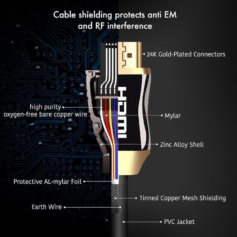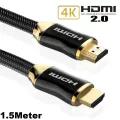 HDMI Cable 4K HDMI 2.0 4K 60Hz - 28AWG Braided Cord - High Speed 18Gbps - Gold Plated Connectors - Audio Return - Video 4K 2160p HD 1080p 1.5Meter