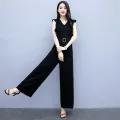 Sleeveless Wide-leg Jumpsuit Women Korean 2022 New High Waist V-neck Loose Slim Fashion High Temperament Jumpsuit Wild Jumpsuit