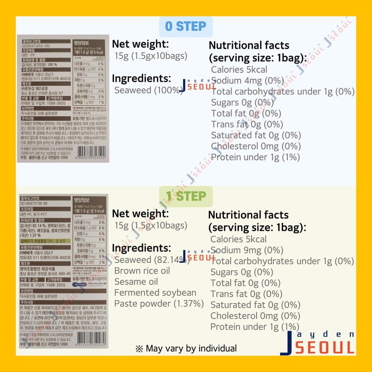 \n\n▷ 1 STEP - Sodium 9mg- Baked with ‘fermented soy sauce’ instead of salt for a light taste