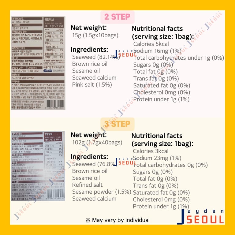 \n\n▷ 3 STEP - Sodium 23mg-Crispy & savory taste baked with ‘Korean sesame seeds’