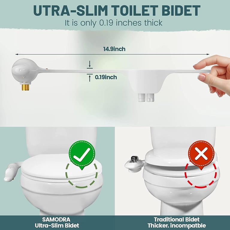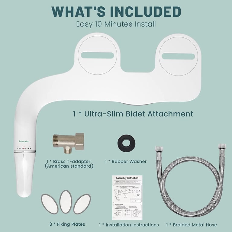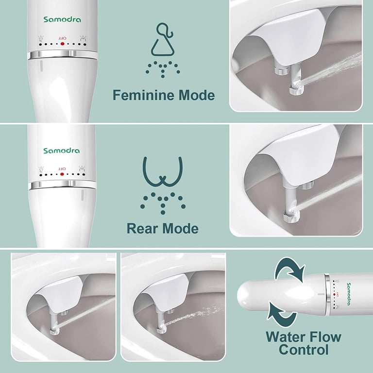 \nsamodra bidet is made of environmental friendly ABS material. Accessories are brass T-shaped adapter and braided steel cold water hose. The overall quality of the toilet seat accessories of the bidet is optimized, the traditional plastics are replaced, and the durability and cost performance of the bidet are improved.