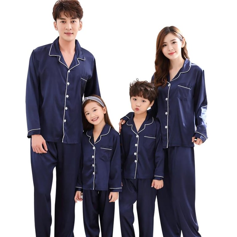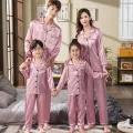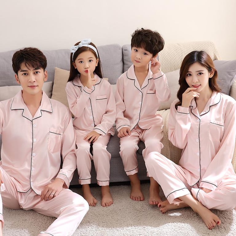 Parent-Child Pajamas Spring and Autumn Long-Sleeved Ice Silk Family Three Mother and Daughter Summer Men's and Women's Medium and Big Children's Homewear Suit