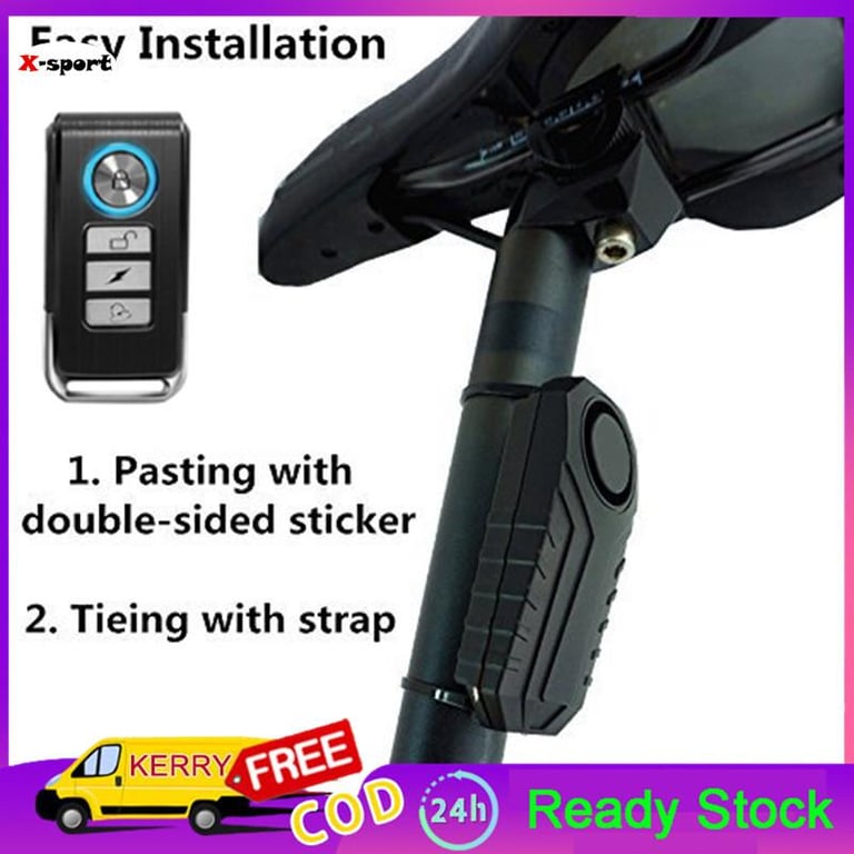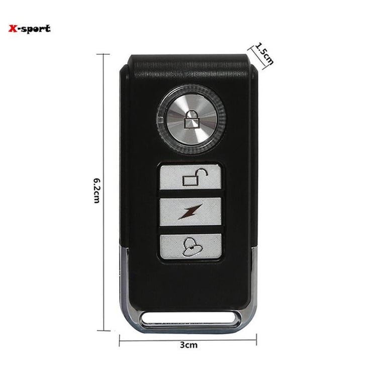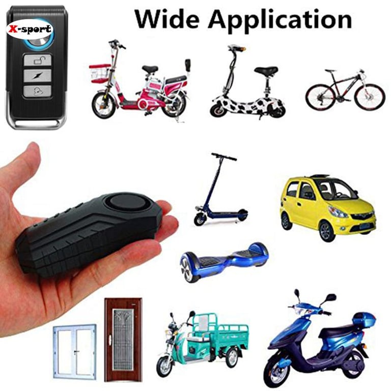 Feature: Vibrationally triggered alarm suitable for Bikes, Motorcycles, Doors or Windows 7 level adjustable sensitivity from gently touches to push or beat Detering thieves effectively by 113dB loud alarm Easy to find your vehicles by 6 kinds of bells with IP55 waterproof pc material shell Installation by pasting with double-sided sticker or tieing it with strapSpecification: An alarm need 3 AAA alkaline batteries (Not Included ) standby for 6-10 months. A remote need a 12V/27A alkaline battery ( included ) standby for over 1 year. Wireless range: 10-20 meters Working environment temperature: -20~60 degree Working environment: <80% Storage temperature: -30~70 degreeIncluded: 1 x Bike Alarm 1 x Cable 1 x Remote Control
