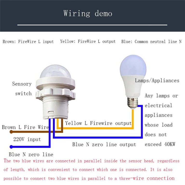 - When entering the sensing range, it will automatically turn on/off in the dark, and there may be a 45s time delay.