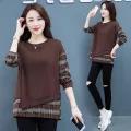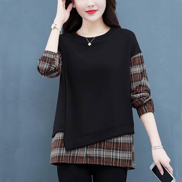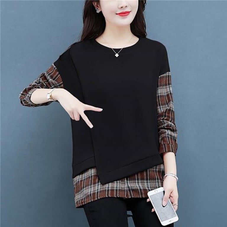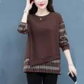 2022 New Fake Two-piece Plaid Bottoming Shirt Women Plus Size Casual Long Sleeve Shirt