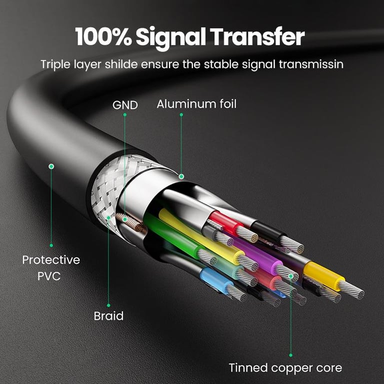 - Good quality:Three layers of shielding, gold-plated contacts and copper lead core.They reduce interference and preserve the stable transmission of signal.