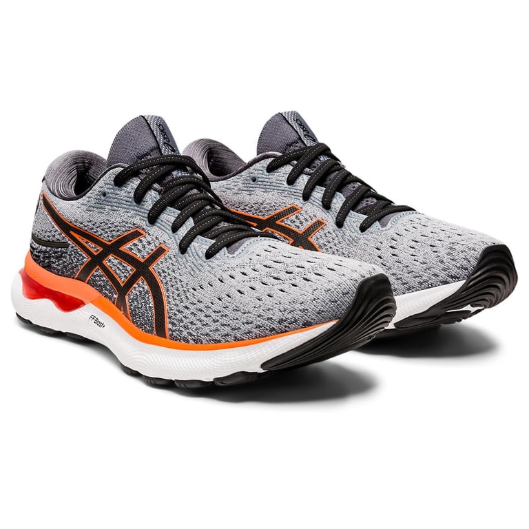 ASICS Men GEL-NIMBUS 24 Running Shoes in Sheet Rock/Shocking Orange