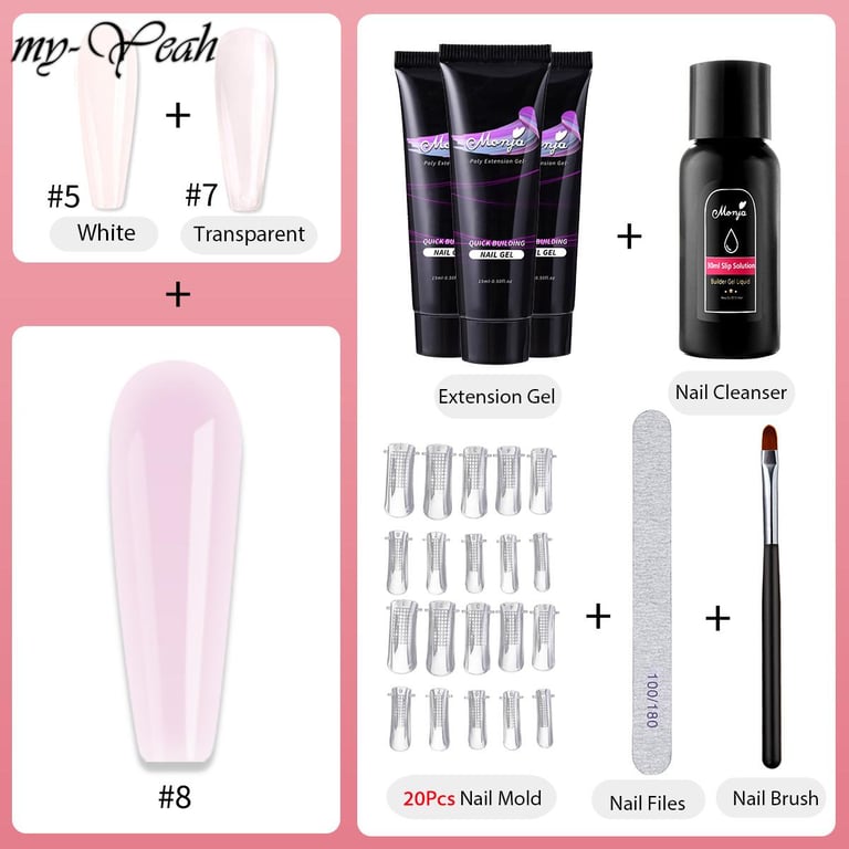 package includes: Brush+ 3*Extension Glue + Matte Strip + Clean Water + Nail Mold