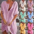 - Features:Women's Shirt Solid Color Mid-length Loose Short-sleeved Shirt