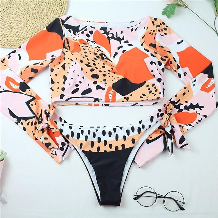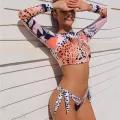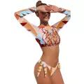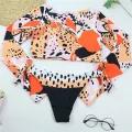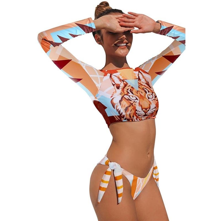 Surfing Swimsuit For Women Bikini Long Sleeve Swimwear Tiger Print Push Up Summer Bath Suit Two Piece Bandeau Biquini